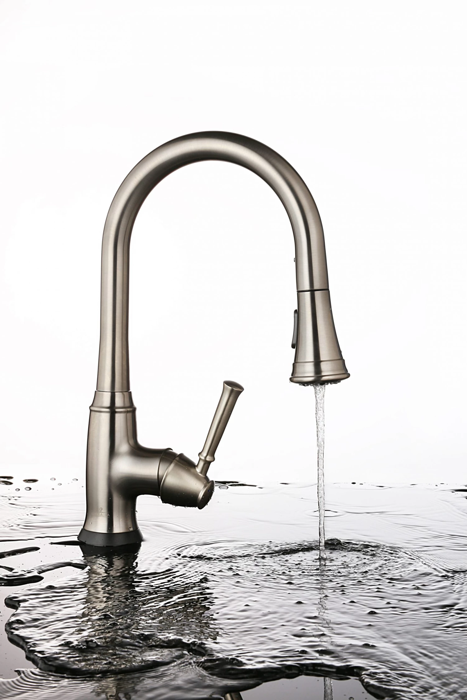 It is a sure bet that during your time in the kitchen, your hands are rarely clean or free. This reality can make it challenging to use your faucet; the touch-operated A-750-BN is the answer to anyone frustrated with traditional faucets. Effortlessly activate the stream of water by touching the body of the faucet and avoid spreading the mess. Go beyond the functionality of the A-750, and you’ll find a beautiful form capable of complementing any kitchen design. The spray function buttons allow you to choose the perfect force of water for any kitchen chore.