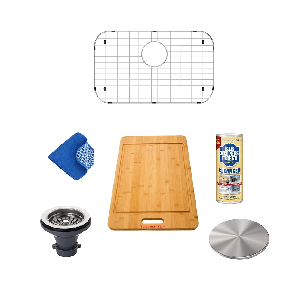 We’ve made it easy to get everything you need for your sink! Grid combination packages include the grid or grids that match your sink, a strainer, and a bamboo cutting board, cleaning kit and drain cover. All made to fit your sink perfectly!