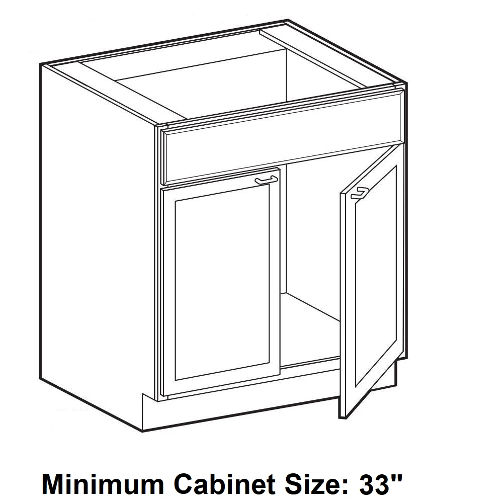 - Q: What size base cabinet is needed to fit this sink? A: This sink fits a 33″ cabinet