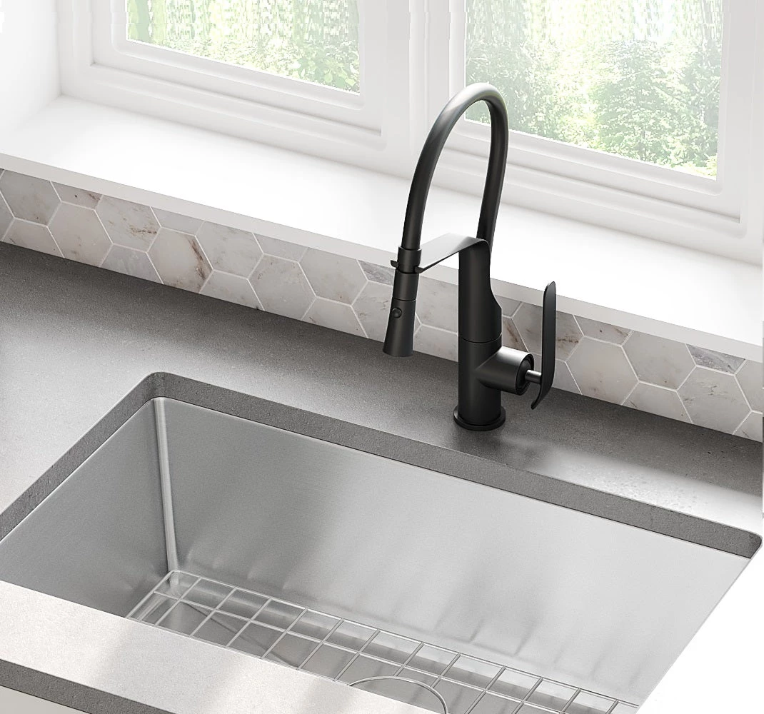 - Padded with undercoated insulation over a rubber pad to reduce noise while the sink is in use