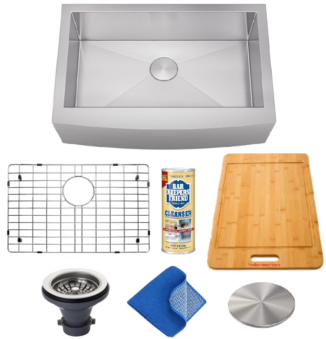 Our kitchen sink combination packages make it easy to save while getting all the accessories you’ll need to get the most out of your new sink. Our combinations include the matching grid or grids, a strainer, and a bamboo cutting board, cleaning kit and drain cover. Sink combos offer an incredible value over buying each accessory individually, and they reduce the frustration over what accessories you’ll need to install, beautify, and protect your new sink. Shop today and compare the potential savings when you choose to buy a sink combination.