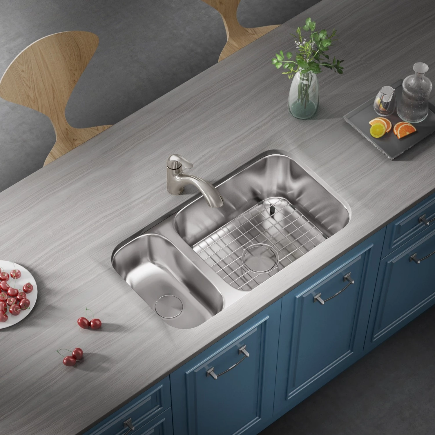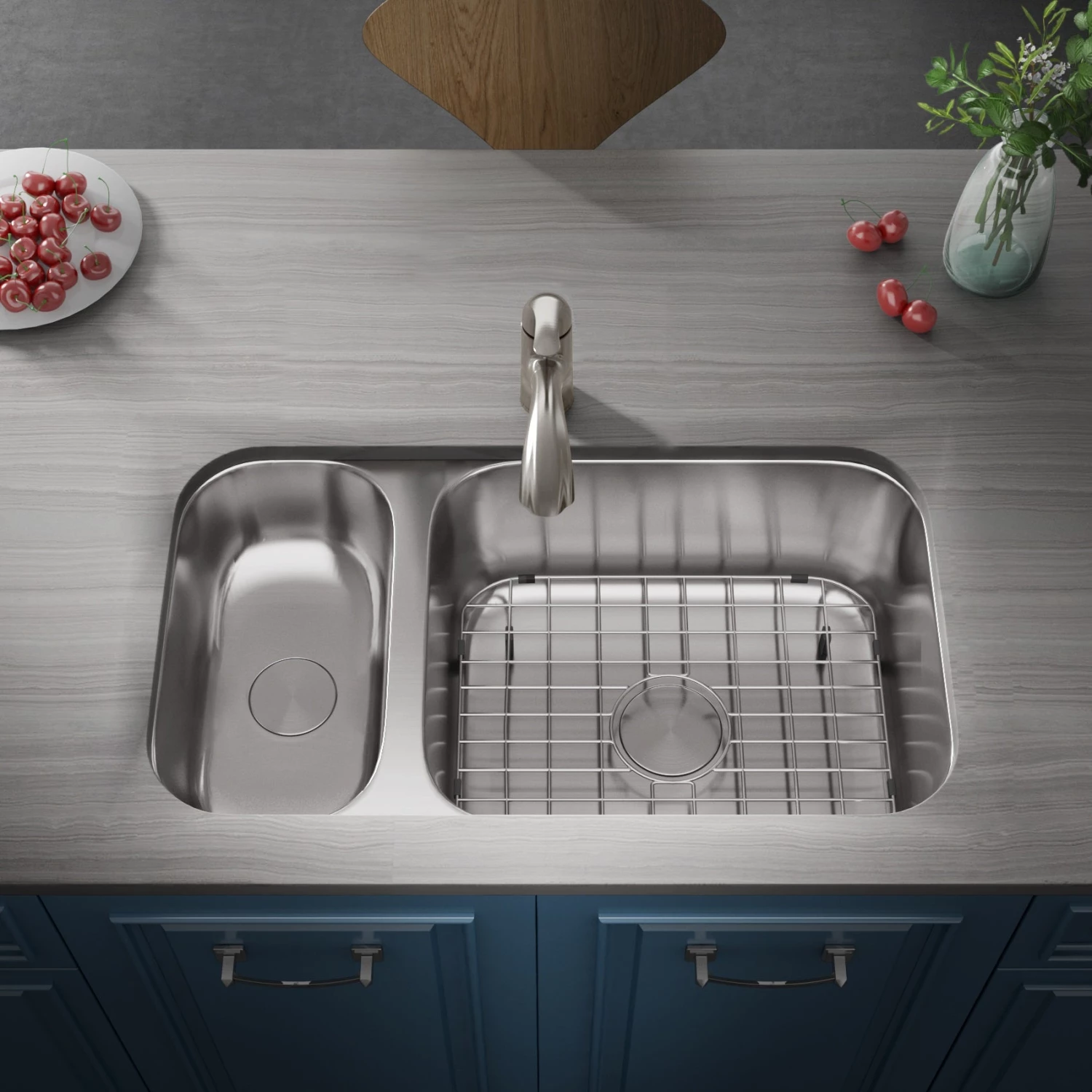 - Q: What size base cabinet is needed to fit this sink? A: This sink fits a 33″ cabinet.