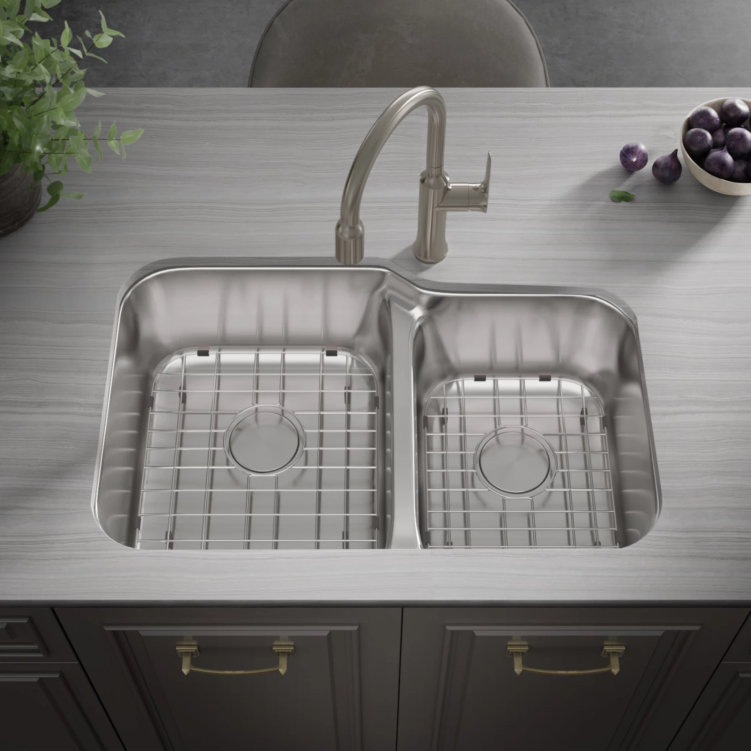 Undermount Low Divider Double Bowl 18 gauge Stainless Steel Kitchen SinkÂ