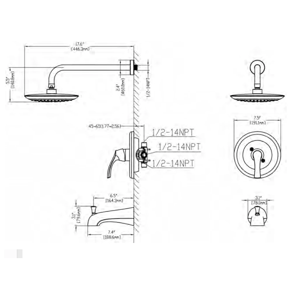 - Single function shower with shower arm