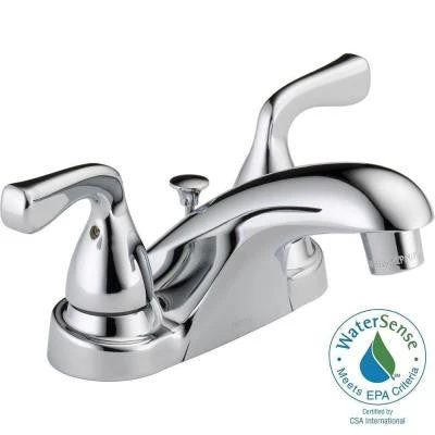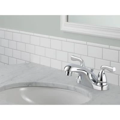 For an updated look or for new installation, consider the Foundations 4 in. 2-Handle Bathroom Faucet in Chrome. The faucet features a deck-plate mounting design and is installed in 3 holes with 4 in. on-center spacing. The 2-handle lever design makes the faucet easy to operate while the low-arc spout leaves plenty of room for washing hands. This environmentally-friendly faucet is WaterSense-certified to reduce water waste.