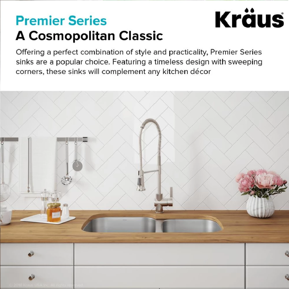 Experience KRAUS Quality with classic stainless-steel sinks that will look great in both traditional and modern kitchens. The Premier series features easy-to-clean rounded corners and a wear-resistant finish that will stand up to your toughest kitchen tasks. Covered under KRAUS Lifetime Limited Warranty.
