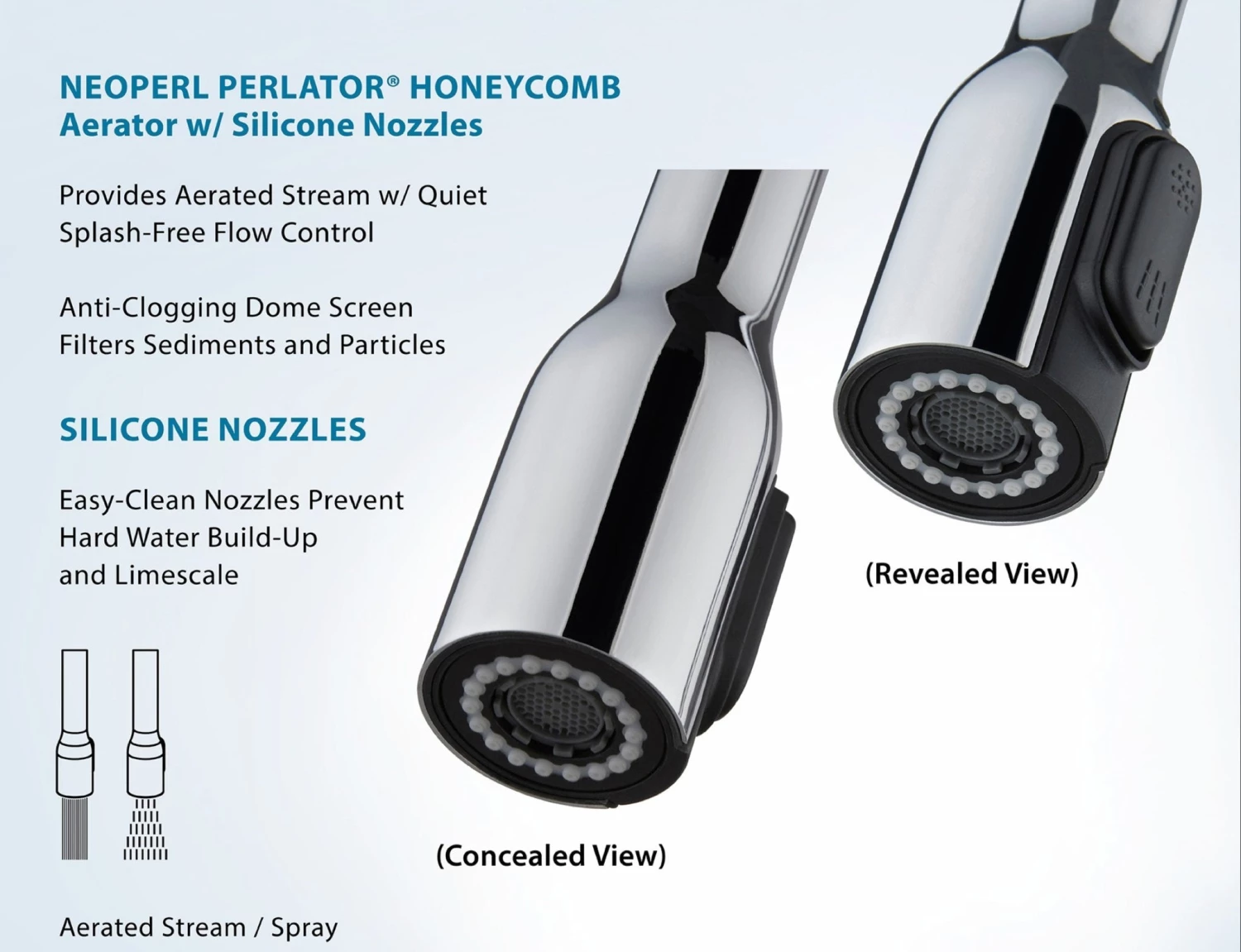 - Easy-Clean Rubber Nozzles Prevent Hard Water Build-Up