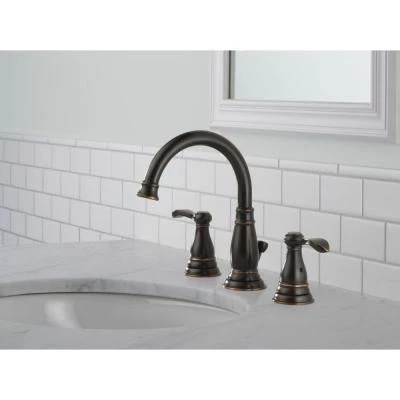 Blend style and functionality with the Porter 8 in. Widespread 2-Handle Bathroom Faucet in Oil Rubbed Bronze. Finished in rich oil-rubbed bronze, it features easy-to-use lever handles, a matching pop-up drain assembly and 1/4 in. handle stops to help limit handle rotation. This environmentally-friendly faucet meets ADA requirements and is WaterSense certified, making it a reliable and efficient choice for your home.