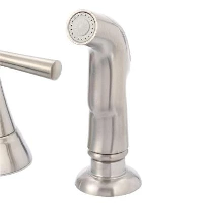 Add elegance to your space with the Pfister Cantara 2-Handle Side Sprayer Kitchen Faucet in Stainless Steel. It has a clean silhouette and classic detailing, and offers a versatile design that’s easy to use. It’s equipped with Tri-Flow for three different water settings: full stream, power spray and eco rinse – all of which are conveniently activated by simply twisting the faucet tip. Eco rinse uses 50% less water, helping your household conserve.
