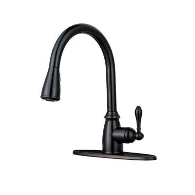 The Pfister Canton Single-Handle Pull-Down Sprayer Kitchen Faucet in Tuscan Bronze inspires easy living. It offers three spray options that are accessible with just the touch of a button, making washing and rinsing easier than ever. This classic-looking faucet features Pforever Seal advanced ceramic disc valve technology for a never-leak guarantee.