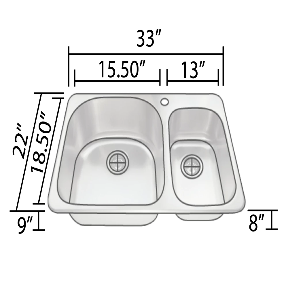 If your remodel or replacement requires a drop-in or top-mount kitchen sink, we have the options and configurations to help you find the perfect sink. Our top-mount sinks feature a standard corner radius that guides water naturally towards the drain, making these as easy to maintain and clean as any standard under-mount sink. Created from a single sheet of 304 stainless steel results in the durability and strength, while our satin finish protects the beauty of your sink from daily wear and tear. A key feature of top-mount sinks is the beautiful crown of stainless steel that rests on your countertop.
