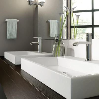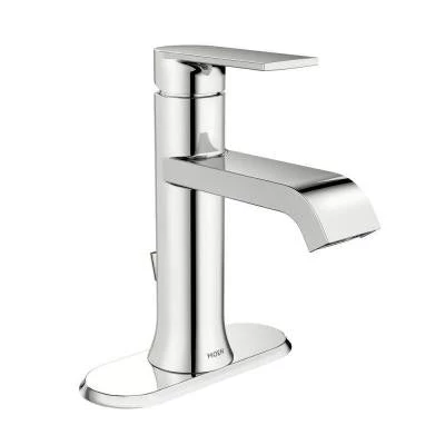 MOEN’s Genta faucet brings a hint of modern elegance to any bathroom. The faucet’s clean lines, high-arc spout, and reflective chrome finish provide a refine, contemporary look. The unique spout delivers a smooth ribbon of cascading water, controlled by an easily adjustable 1-handle lever.