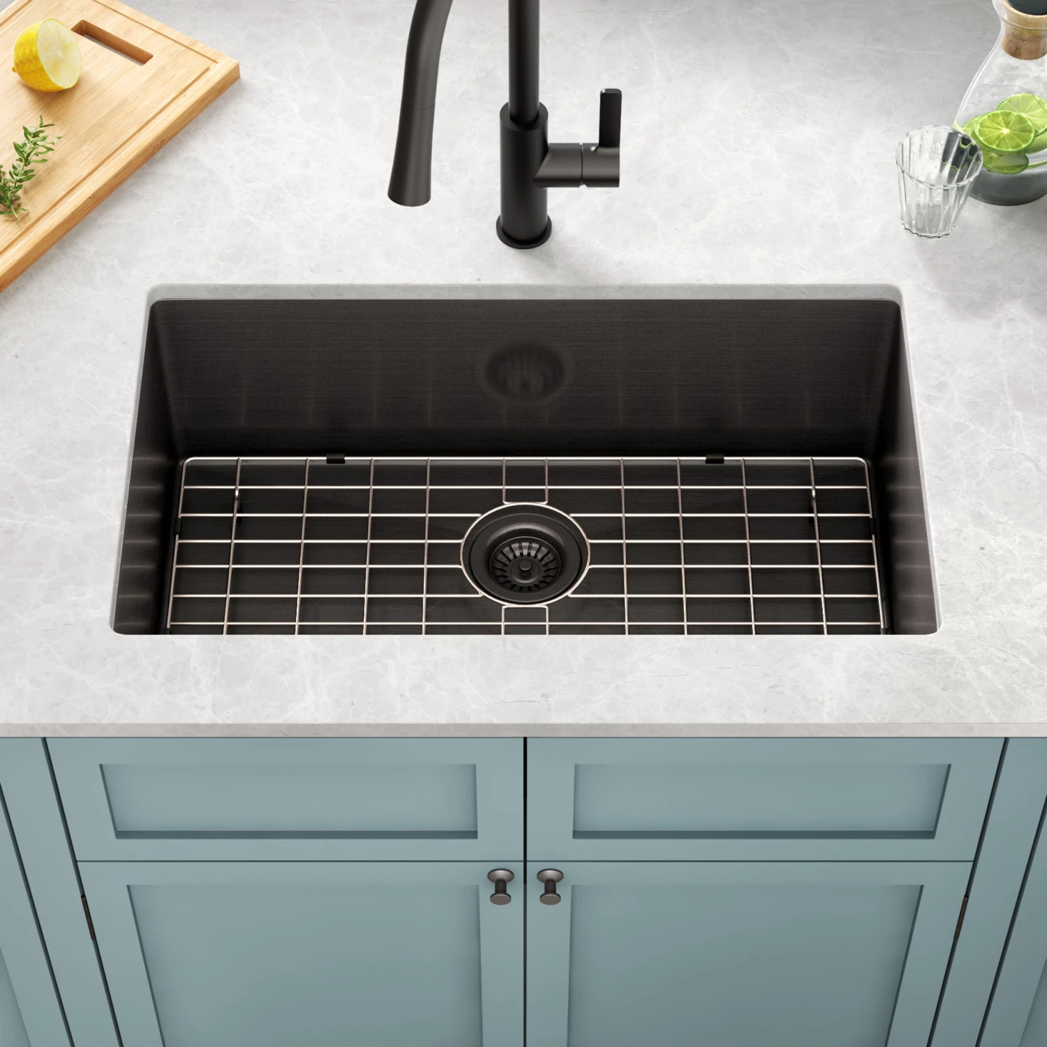 - Padded with undercoated insulation over a rubber pad to reduce noise while the sink is in use