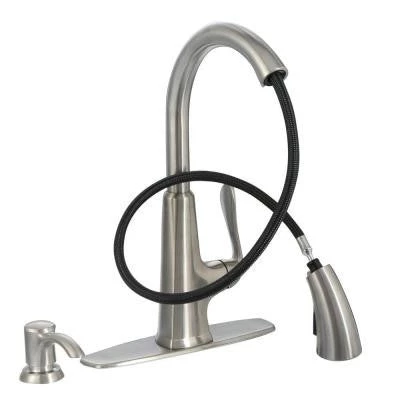 A truly versatile design, the Pfister Pasadena Single-Handle Pull-Down Sprayer Kitchen Faucet is a transitional piece that complements a variety of decor. With beauty and function, you can use the 2-function pull-down sprayhead for extended reach and maneuverability. Advanced AccuDock technology keeps the sprayhead securely in place. This stainless steel Pasadena is also easy to clean with rubber nozzles on the sprayface that enable quick removal of hard water buildup with just the simple wipe of your finger. These features make Pasadena ideal for today’s busy kitchens.