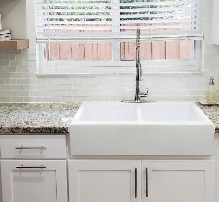 The Parker Quick-Fit fireclay kitchen sink brings Sinkology’s ELEVATE collection to your home. Our handcrafted double bowl sink glows with the classic beauty of the farmhouse style. The Parker Quick-Fit sink is designed to make installation easy and works with most existing countertops and cabinets. Traditionally farmhouse kitchen sinks were heavy and difficult to install and required countertop and cabinet replacement. No longer are stylish and classic apron front farm sinks reserved for total kitchen make overs, Sinkology and The Home Depot make updating your kitchen easy and affordable. The Parker drop-in kitchen sink is designed to withstand the needs of a busy kitchen without sacrificing the classic look of an authentic apron sink. The double bowl, apron-front sink features a crisp white finish that brings clean, timeless beauty to your kitchen. All Sinkology sinks are guaranteed to not chip, crack, stain, or rust, and we back that promise with our exclusive Sinkology Lifetime Warranty. The Parker Quick-Fit double bowl farmhouse sink from our ELEVATE collection is functional, reliable, and priced with you in mind.