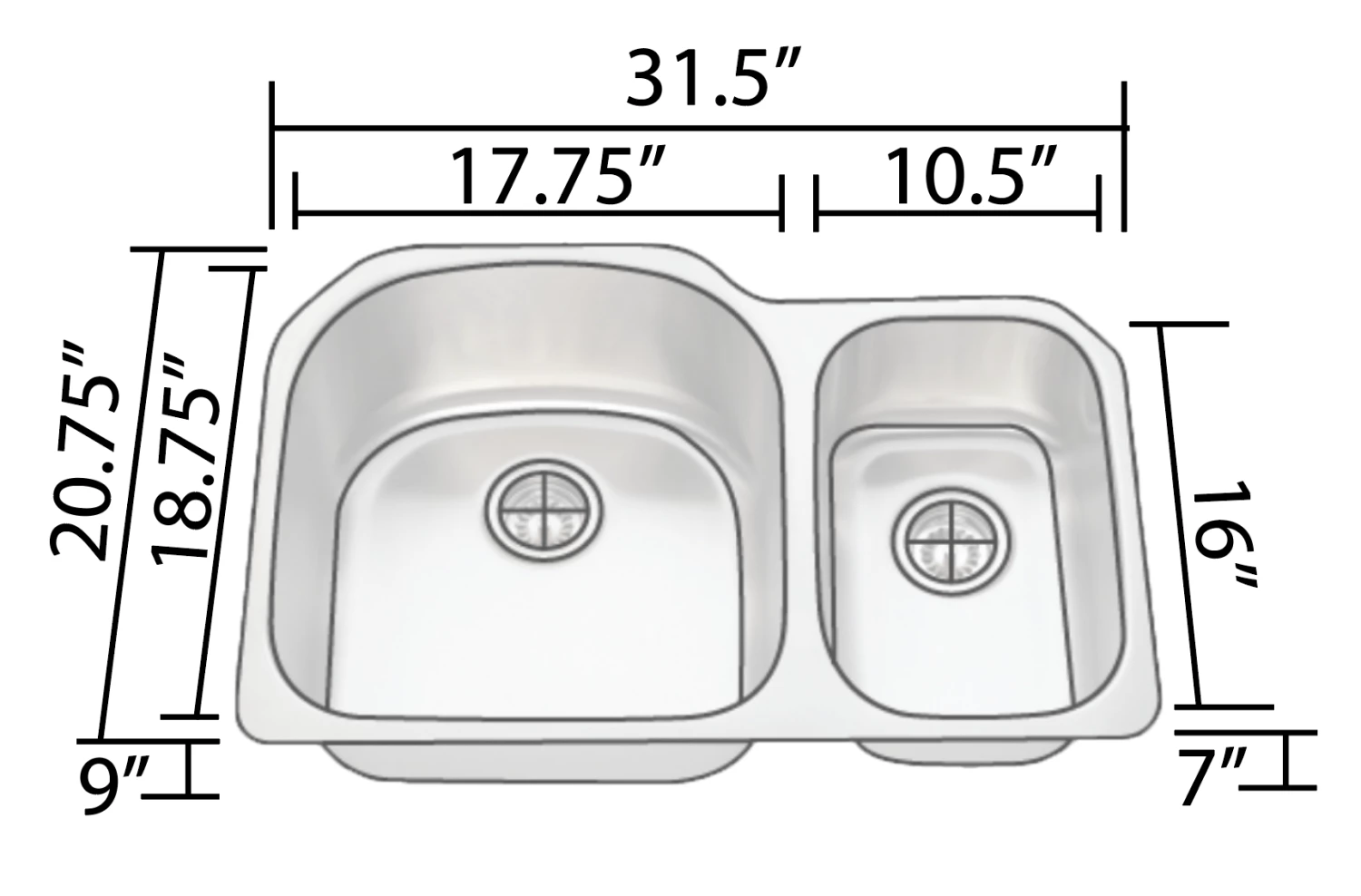 Undermount 70/30 Double Bowl 18 gauge Stainless Steel Kitchen Sink
