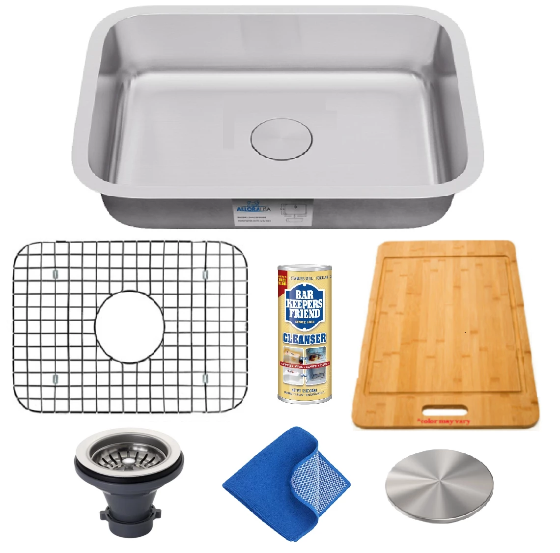 Our kitchen sink combination packages make it easy to save while getting all the accessories you’ll need to get the most out of your new sink. Our combinations include the matching grid or grids, a strainer, and a bamboo cutting board, cleaning kit and drain cover. Sink combos offer an incredible value over buying each accessory individually, and they reduce the frustration over what accessories you’ll need to install, beautify, and protect your new sink. Shop today and compare the potential savings when you choose to buy a sink combination.Â