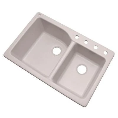 This Grande white composite granite double bowl kitchen sink from Mont Blanc has a durable, easy-to-clean matte surface that’s designed to retain its luster and resiliency for years. The dual mount four-hole sink possesses the strength and beauty of granite in a composite material that’s lightweight and easy to install. Disposal vibrations and the pitter-patter of running water are minimized by the insulated construction, which is resistant to scratching, chipping, staining, rust and oxidation for lasting durability. It installs as a drop-in or undermount to match your preferred sink-to-countertop transition.